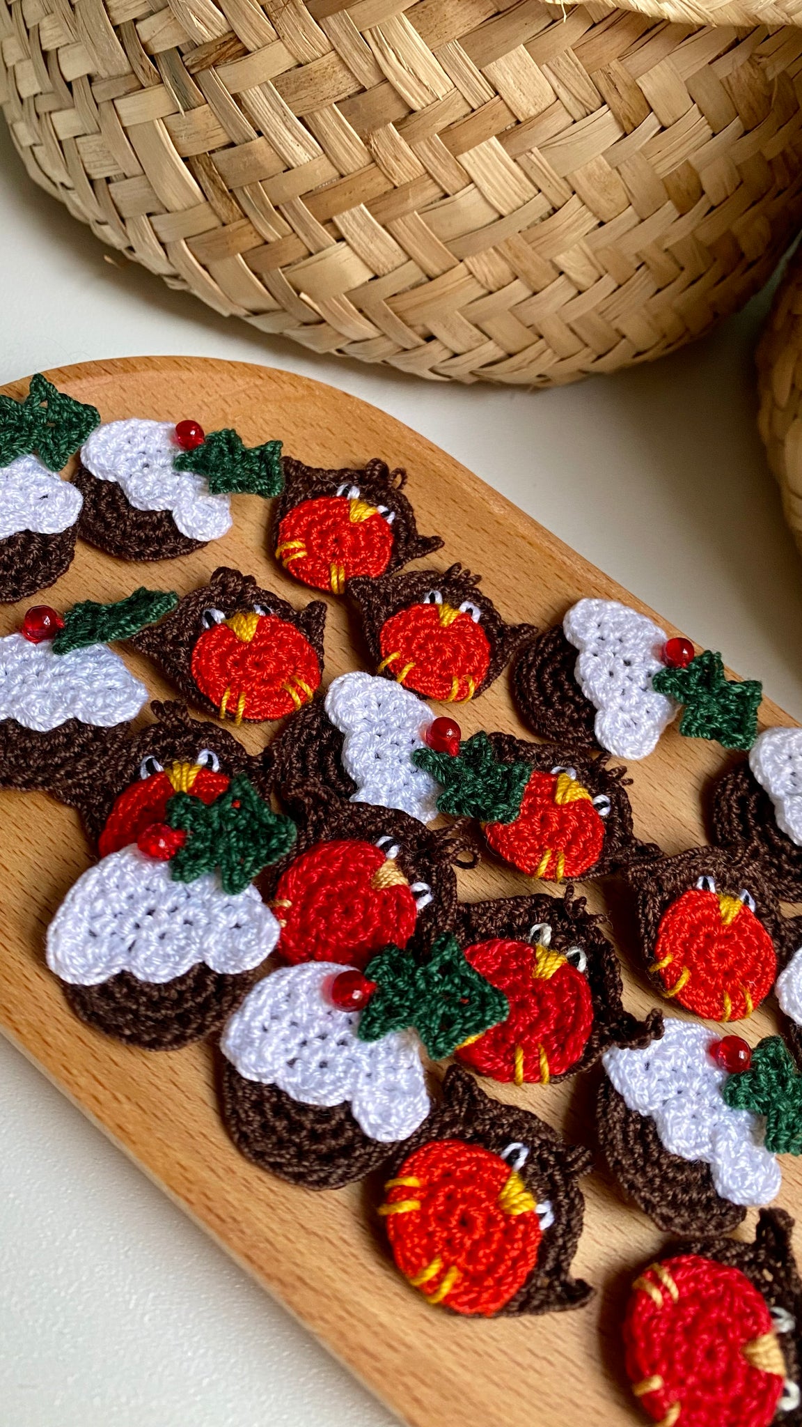 A delicate hand crocheted Robin made using high quality 100% cotton yarn finished with little red beads.